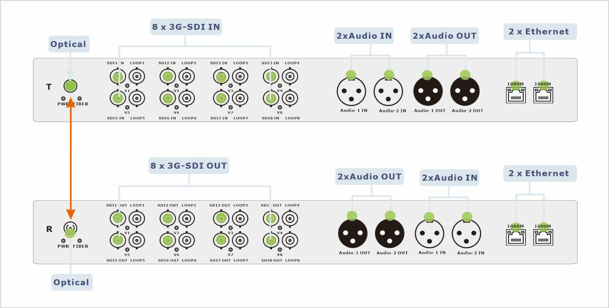 Specification for 8-Channel 3G-SDI Fiber Optic Extender With 19inch 1U Rack: